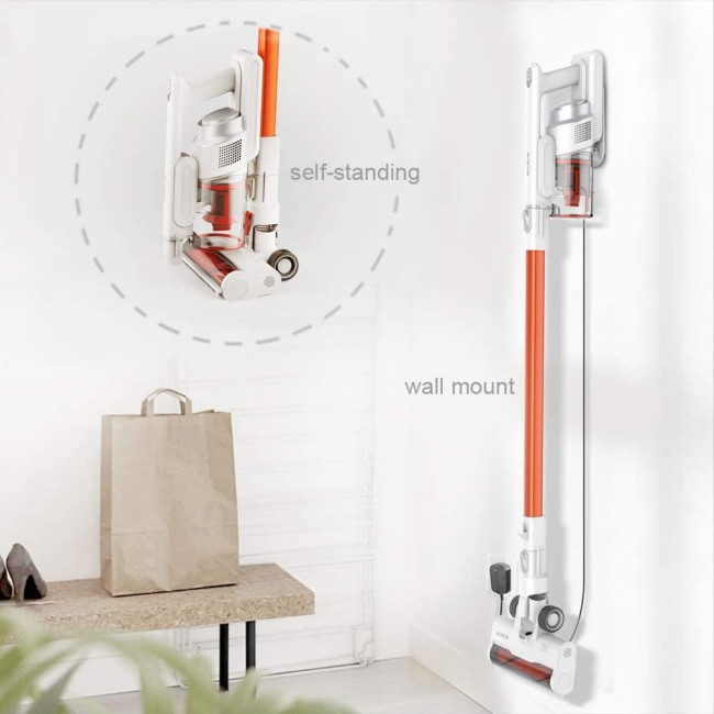 I still have my traditional vacuum cleaner for hardcore cleaning jobs but this handy vacuum cleaner is my go to for every day quick cleanups and floor maintenance. The 150 watt motor provides you with a continuous 10Kpa suction in MAX mode to complete a quick and thorough cleaning on hard wood floors, tile floors, marble floors, thin carpets and stairs. I keep this in my pantry and have it hanging on the wall as it is so convenient and I can grab it to make quick cleans whenever I am in need. The unit comes with everything you need to mount it on the wall of you can just leave it standing.