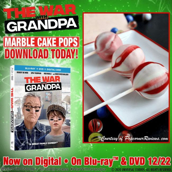 So what do you think? Are you a movie fan and looking for a new family comedy that the kids and adults will enjoy? Look no further than War With Grandpa as it is lots of fun for the whole gang! Pick up a copy today and make sure to check out this recipe and Ring In The Holiday Season with these fun and festive Marble Cake Pops!
