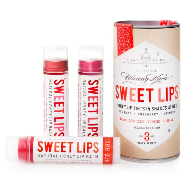 This trio has your lips covered if you’re looking for a serious dose of moisture as it is formulated with honey and plant oils to be soothing to the lips, and colored with mineral pigments for a naturally vibrant pop of color. These Sweet Lips are soothing on dry, chapped lips, without heavy mineral oils or tacky fillers. In this trio you receive three beautiful shades…. Red Rose, Cranberry and Crimson. If you are in need of a USDA Certified Organic Honey Lip Balm with no tint then try Waxing Kara’s Sweet Lips Honey Lip Balm.