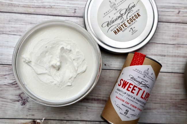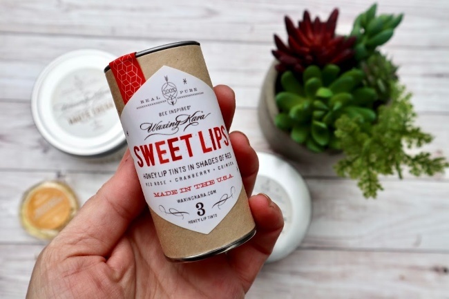 In the Waxing Kara Haute Mama Gift Set you will also receive their Red Tinted Lip Balm Trio that is made here in the USA and let me tell you….. they are everything! I love all 3 shades that come in this collection and the added tint of color to the lips is super natural and beautiful looking. They are made with a 92% organic formulation that pampers your lips by providing luxurious moisture with a sheer kiss of color to brighten your day and your mood. Honey, beeswax, botanicals and mineral colors combined to form a richly nourishing formulation that will leave your lips smooth, soft and shimmery.