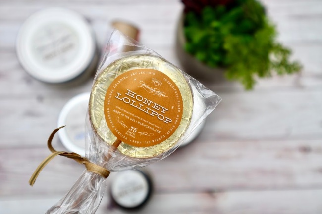 This fabulous gift set also contains a delicious Honey Lollipop from waxing Kara! This Honey Lollipop provides portable sweetness on a stick and it’s perfect as a sucker or for stirring into a cup of hot tea too as a sweetener. Waxing Kara’s original honey lollipops are handmade and have been featured in Cooking Light, Lonny, Food & Wine and Southern Living Magazines. Each lollipop weighs about one ounce and you can buy them by the bag or the box. Makes a great teacher gifts, great co-worker gifts and they are fabulous favors too!