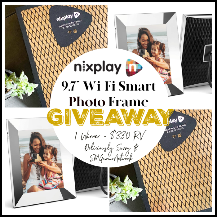 1 Lucky Winner will win a Nixplay 9.7” Wi-Fi Smart Photo Frame Valued At $330! Share photos or video footage from your phone to the frame in seconds! Gift it and add photos to your recipients frame anytime too! Amazing technology and the steel frame is simply stunning.