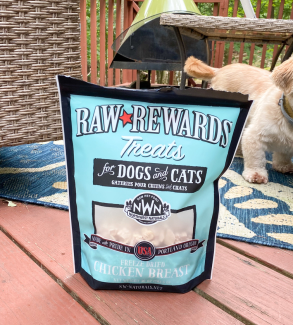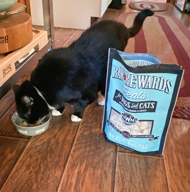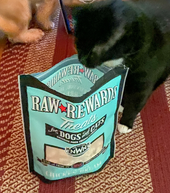 My cat literally clawed his way through this bag of RAW REWARDS Freeze Dried Chicken Breast Treats for both Dogs & Cats. I have to lock it up as he loves it so much and yes… so do my dogs BUT I love that there is a freeze dried raw food diet option for my cat as usually they are for dogs.