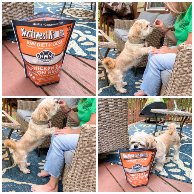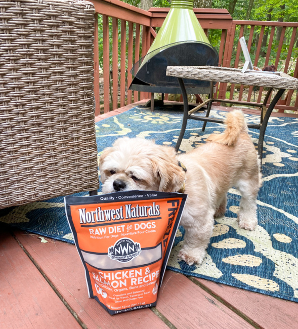 My dog Harley LOVES the Northwest Naturals Freeze Dried Diets in the Chicken & Salmon Recipe. They are the same as frozen raw diet foods but in a freeze dried form. Because they are freeze dried….there is no need to keep the food frozen as it is freeze dried to make it the perfect food for your pooch any time… even on the go!
