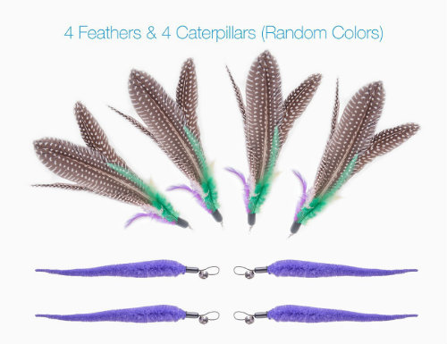 - Their cat wand comes with 4 feathers and 4 caterpillars, so your cat has 8 toys to play with