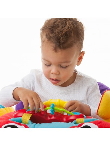 - Detachable music and lights driver toy * Convenient storage pouch * A soft place for baby to sit and play * Side mirror for learning reflection