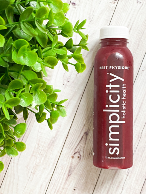 BEET PHYSIQUE is hands down my favorite of all of SIMPLICITY’s juices. It is a delicious combination of Cold-Pressed Beet, Cold-Pressed Apple, Cold-Pressed Carrot, Cold-Pressed Orange, Cold-Pressed Lemon and it is packed with vitamins, minerals, antioxidants, folate, nitrates, and electrolytes.