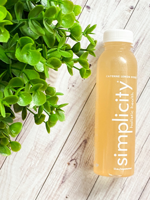 SIMPLICITY’s CAYENNE LEMON KICKER is perfect for jump starting your metabolism. It is a spicy lemon love for sure and it’s ingredients are Purified water, Cold-Pressed Lemon, Agave nectar and a pinch of Cayenne Pepper. It is packed with Vitamin C and D it is Vegan, Non-GMO and Gluten Free.