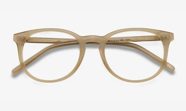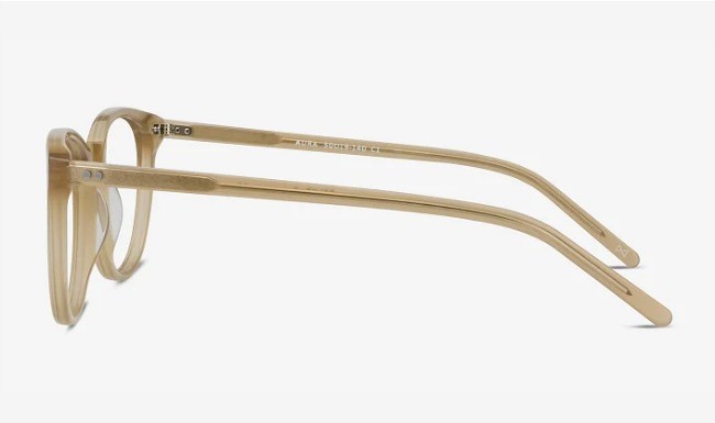 The Aura Round Matte Champagne Glasses provide a soft and unique look as the finish on this frame is stylish and distinctive, while the double studs and keyhole nose bridge add even more to their chic aesthetic. This pair is considered a medium size frame that looks amazing with everything and that is suitable for all and any occasions. As with all EyeBuyDirect glasses…. they come with a really nice carrying case and cloth for cleaning.