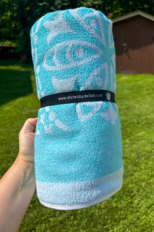 I love the Drytek Blanket and will use it for the beach, lake, picnic, outdoor event and even for simply hanging out in my backyard! I so appreciate that this absorbent Drytek blanket is made with recycled water bottles and it feels so luxurious and amazing too.