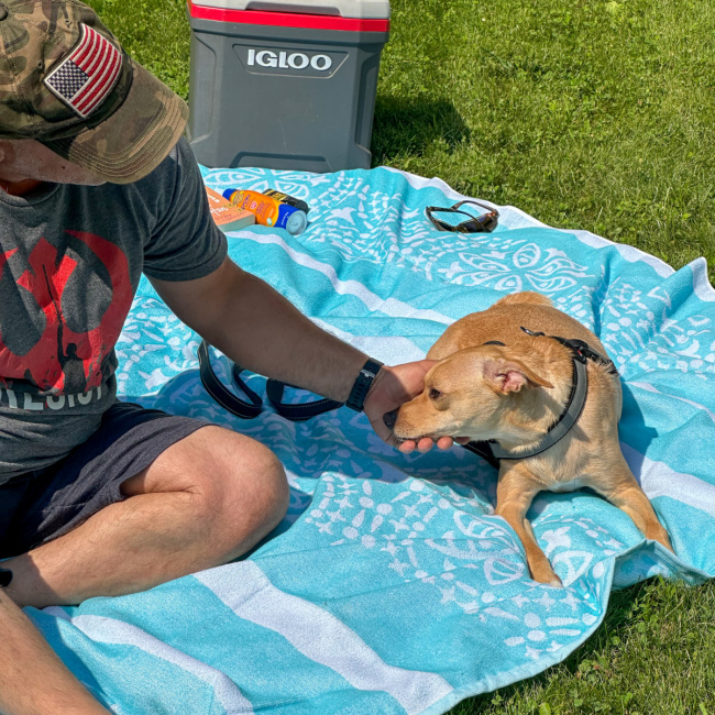 I love using this comfy towel to hang outdoors with my dog Jax so that we can lounge outdoors. It is an amazing piece and I will for sure keep this in the trunk of my car so that I can have it to use anytime that I may need it. You can purchase Drytek by Delilah Home on their website DelilahHome.com but you can also find them at Grommet, Macys, Amazon, & Etsy too!