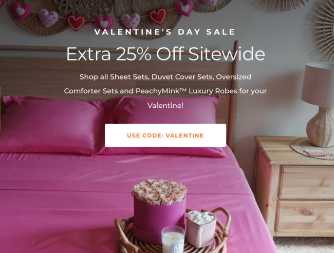 Want to save money when purchasing PeachSkinSheets!? I have a savvy tip for you and it is to shop PeachSkinSheets’ Colors Of The Month Sale! Each month PeachSkinSheets picks three or four new colors that are on sale BUT right now they are hosting a site wide sale for Valentine’s Day ~ and everything is 25% off PLUS Free Shipping! Simply Use Code VALENTINE at the checkout! There is no better time to stock up on all of your favorite colors and this includes PeachSkinSheets Classic Sheet Sets, Duvet Cover Sets, Oversized Comforter Sets in all colors PLUS their PeachyMinkâ„¢ Luxury Robes too! This makes it the perfect time to stock up on PeachSkinSheets bedding essentials and refresh all of the bedding throughout your home!