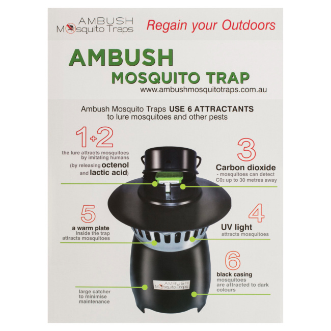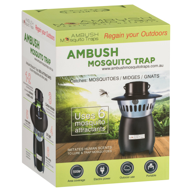 Let’s talk the science behind this amazingly effective mosquito trap. This trap is designed to break the breeding cycle of the mosquitos and it all starts with the fact that female mosquitos need blood to nourish their eggs.They get that blood from you, your family, your pets and your friends. They are so good at tracking the source of fresh blood down, by sensing the carbon dioxide, octenol, moisture and heat from your breath. They are also very attracted to UV light which is why The Ambush Mosquito Trap works so well as it a combination of all of these cues to attract those pesky blood sucking mosquitos. Basically The Ambush Mosquito Trap tricks the insects into thinking that the Ambush is a host and here they can get their next blood meal. Once the mosquitos approach the Ambush Mosquito Trap, they are sucked into the catch container by a powerful vacuum fan. Once they are trapped in the Ambush, they quickly dehydrate and die.