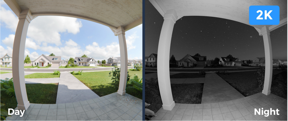 As the industry-first doorbell with a combination of 2K 4MP super HD resolution and a unique 1:1 aspect ratio, the Reolink Battery Doorbell provides an expansive 150°x150°x180° head-to-toe view. This groundbreaking design offers unparalleled visibility of the front door and its surroundings. Day or night, the doorbell with advanced night vision technology captures clear images in 2K HD without blurriness.