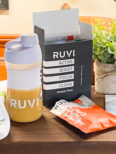 Ruvi is sooooo good for you as their fruit and veggie freeze dried powder packs contain fruits and veggies that are picked at the peak of nutrition, color and taste and then those fruits and veggies are flash frozen within hours. They are then freeze dried to lock in their nutrients and then powdered and packaged. It is truly the fun new way to get loads of veggies and fruit in one easy sitting. Each packet provides 4 of your 10 servings… just like that and there are four varieties of Ruvi fruit and veggie freeze dried powder packs to choose from. They have an Active blend, a Focus blend, a Boost blend and a Clean blend. Let’s take a look at each…..