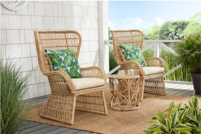 With the StyleWell CoCo Breeze 3-Piece Brown Wicker Outdoor Seating Set you and your guest can sit back, relax and enjoy your outdoor space comfortably and in style. This set includes 2 wingback chairs with beige cushions for the ultimate in comfort and the set even includes lumbar pillows for a colorful accent. The set comes with a small chat table that sits perfectly between the two chairs and is the perfect spot to sit down your drink or whatever you may have in hand. This set is crafted with a weather resistant wicker body so that it will last for years and years to come.