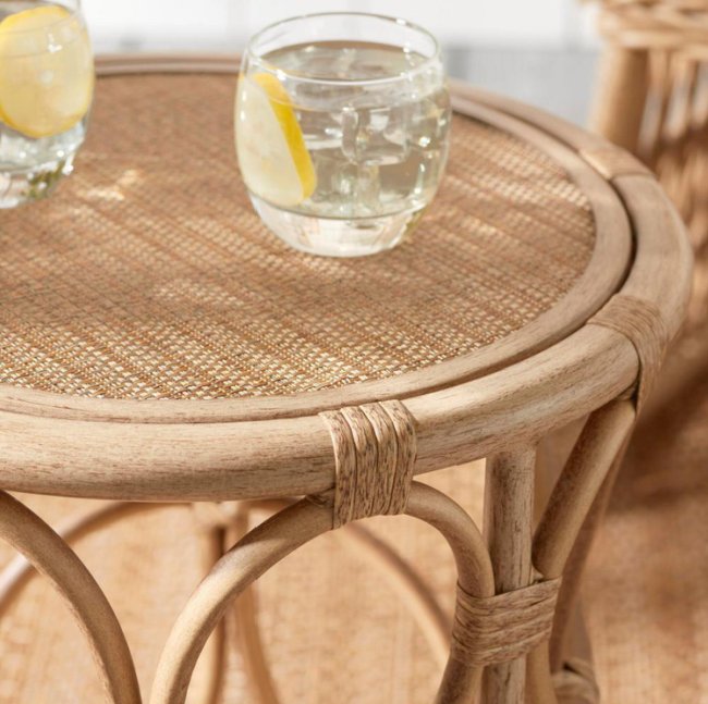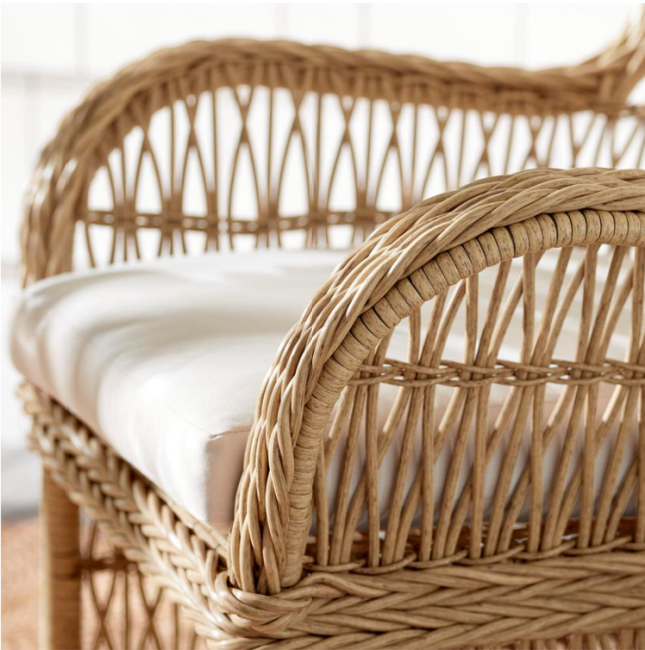 I love the fun style of this set and I also love that this set can be used indoors or outdoors, making it super convenient and versatile. I love that the wicker is weather resistant and that they use olefin fabric cushions which are super comfy and the beige color makes it perfect to match with any decor or style. Keeping the set clean is a breeze….Simply clean the set with warm water, mild soap and a clean cloth.