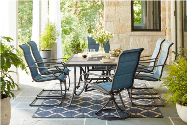 The Hampton Bay Crestridge Steel Padded Sling C-Spring Outdoor Patio Dining Chairs are super comfortable and stylish. I love the blue denim color too as it will match perfectly with what I already have. The rich brown, powder-coated steel frames are rust-resistant and the Conley denim sling fabric is perfect for us as it resists fading, mold and mildew. The relaxing C-Spring motion and soft padding make these chairs ideal for porches, patios and sunrooms. I also have to say that I love that they are backed by a 3 year frame warranty and a 2 year fabric limited warranty.