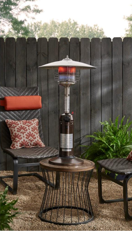This tabletop heater from Hampton Bay will allow you to stay warm this winter season via their Powder Coated Bronze Tabletop Propane Patio Heater. This unit produces up to 11,000 BTU’s of heat to ensure that you are comfy when outdoors even on those colder winter days. The sleek, bronze design looks really nice too and compliments any outdoor furnishing style.