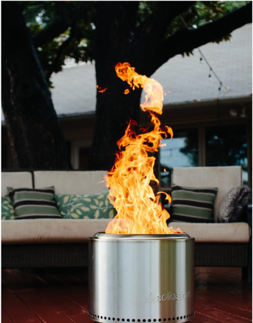 The way it works is the Solo Stove Bonfire gets its power from logs, larger sticks or woody debris that you add to it to fuel the fire while the air intake holes on the bottom of the unit pull the air in towards the fuel source. While air is being pulled in, the double-wall construction allows air to be heated up and fed through the top vents providing an extra boost of pre-heated oxygen, creating a secondary combustion and a beautiful flame that your family and friends will enjoy watching.