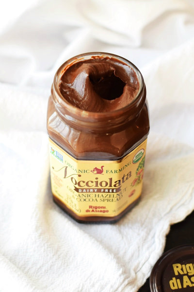 I love desserts and I especially love chocolate and hazelnuts so I knew that I was going to love this Nocciolata Dairy Free Organic Hazelnut & Cocoa Spread from Rigoni di Asiago. This is a delicious and spreadable cream of cocoa and hazelnuts with ingredients that are all organic. This delicious chocolate spread is made of organically farmed hazelnut paste (16%) and it is sweetened with organic cane sugar. In addition to the delicious basics…. they also use cold pressed sunflower oil, vanilla and cocoa butter. I love that there is nothing artificial about this tasty treat and it contains no trans fat and no palm oils. Noting but goodness.