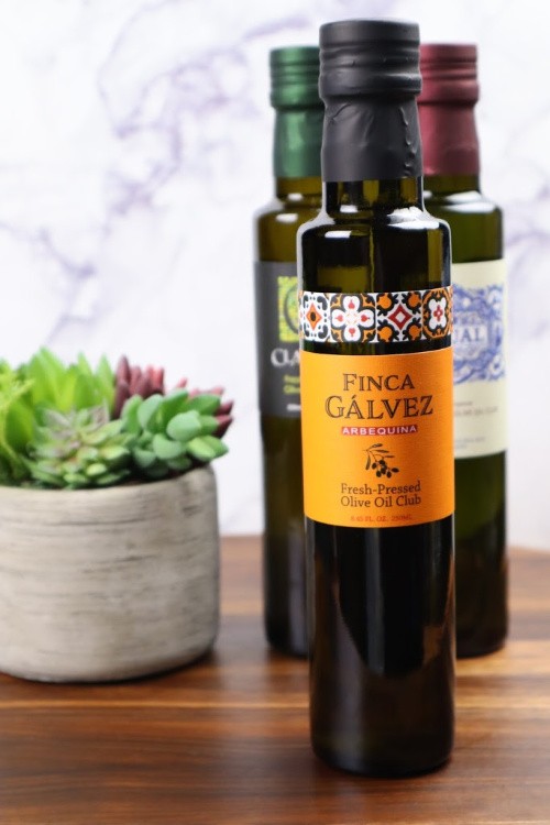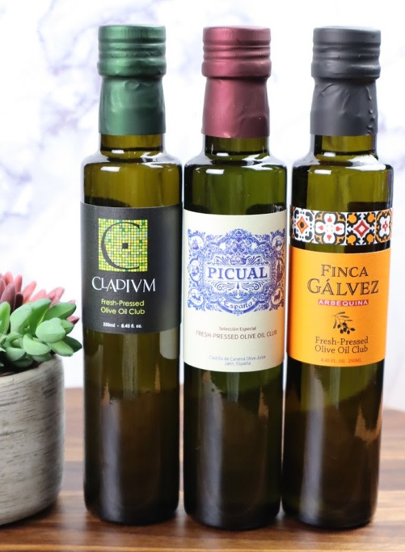 I am so excited to share the newest subscription service that I am loving…. and it’s called Freshly-Pressed Olive Oil Club. The Freshly-Pressed Olive Oil Club sends you 3 bottles of fresh-pressed supreme extra virgin olive oils every 3 months. There are two different options… one is for their set of three large 16.9 ounce bottles & another is for their set of three smaller 8.45 ounce bottles. Whichever you choose depends on how much you need or use but the end result is freshly-pressed oil rushed to your table straight from artisanal farms at the peak of harvest-fresh flavor and nutritional potency. They are amazingly delicious and I cannot wait to share some of my favorites.