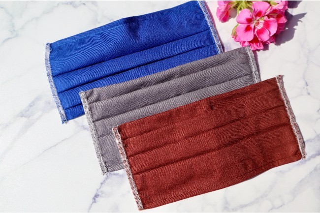 These masks fit beautifully and are super comfy. You get a charcoal color, Marine Blue and Brown. The fabric is 100% cotton making it breathable and they are reusable, washable, pleated, hemmed, double-ply face masks that you can use again and again.