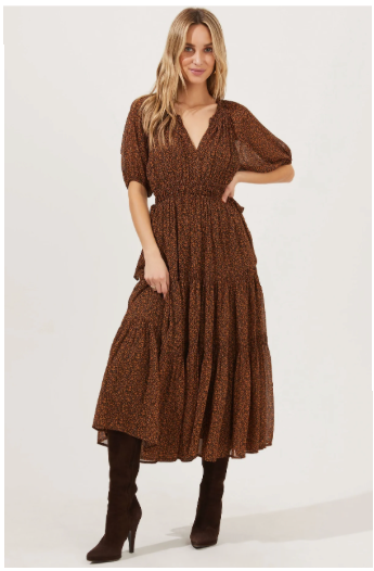 The Garden State dress is a must-have for any woman who is looking to add some autumn glamor to her wardrobe. Its floaty chiffon fabric, luscious tones, and the perfect amount of skin make it the ideal choice for any occasion.