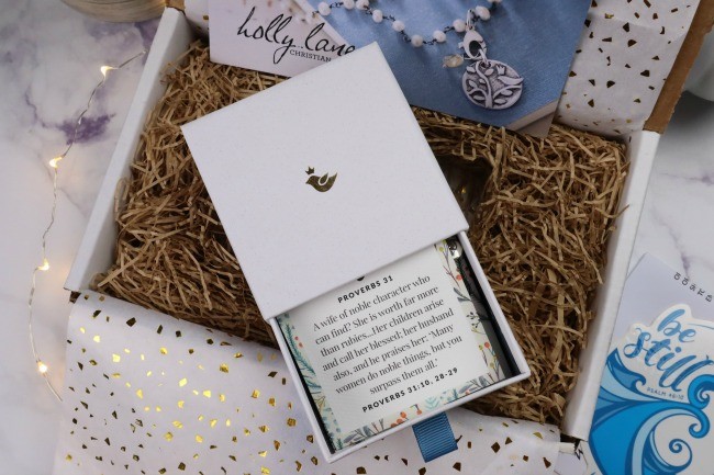 I chose the Proverbs 31 Necklace as I fell in love with the message that accompanied it…. “A crowned heart because you are a daughter of the King, a blessed charm to represent the great joy of family, and a precious ruby drop to remind you of your great worth.”