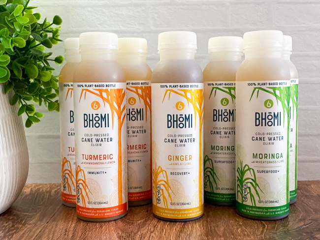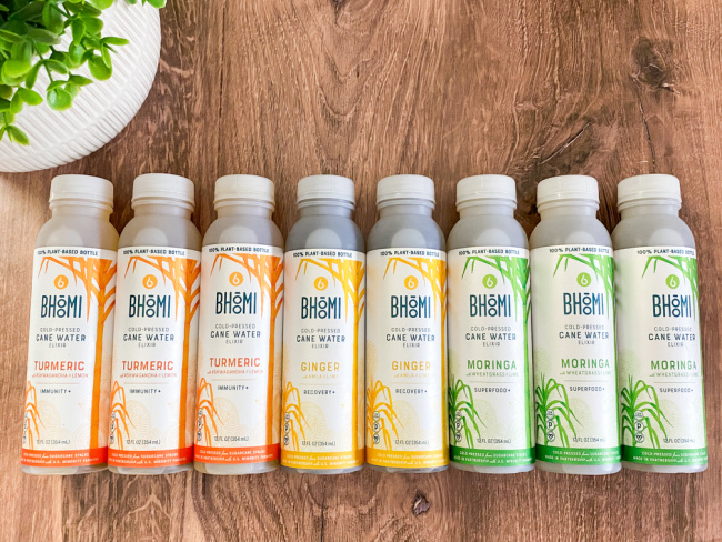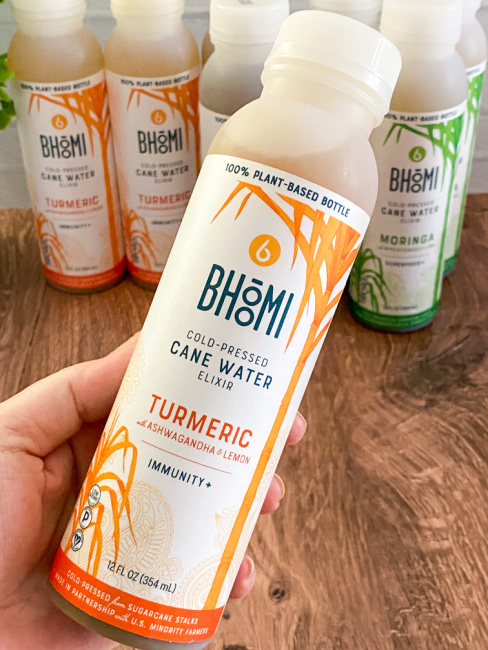 A bit about Bhoomi Cane Water Elixirs ….Bhoomi means “Mother Earth,” and Bhoomi’s vision is to reconnect humanity to balanced health, equitable economies, and regenerative practices which is something that I love. They create the highest quality re-hydrating beverages from nourishing, cold pressed cane. Bhoomi extracts the hydrating water from cold-pressured cane stalks and infuse it with functional ingredients such as Tumeric, Ashwagandha, Moringa, Ginger and Amla to bring you this nutrient-rich delicious elixir that is refreshing and delicious. Rest assured too that Bhoomi Cane Water Elixirs contain no added sugars, no preservatives, no artificial ingredients and they are 100% vegan and made here in the USA.
