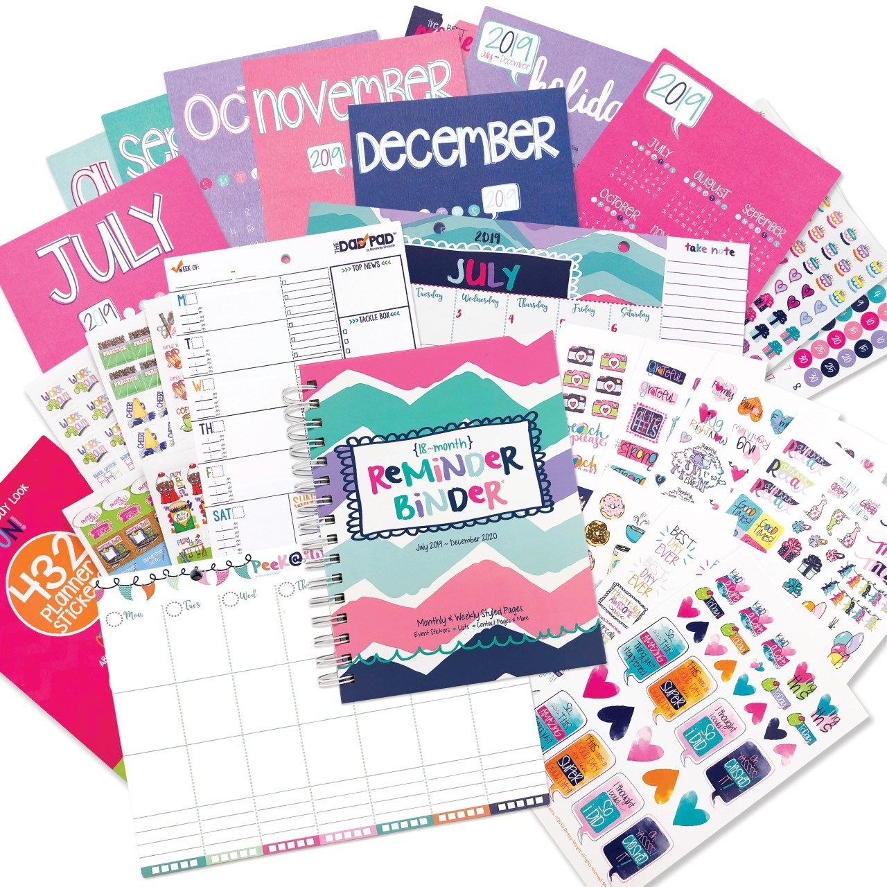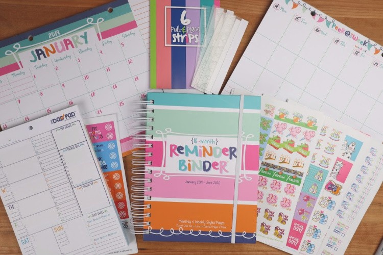 I am so excited to share my secret weapon for staying organized and on top of all things family, work and play…. and it is Denise Albright’s NEW 2019-2020 Reminder Binder® Planner! This is for sure the perfect planner for me & my family as it has everything that I need to stay organized including stickers and add on accessories that make keeping and staying organized fun. I can keep track of all that I need to do on any given day, week, month and more with everything that this binder offers. It helps you to stay organized for 18 months and it is amazing. The ones you see pictured here are an older style that covers January 2019 through June 2020 but they have a new updated one that covers through December 2020 which is just awesome and that has a new color palette as well.