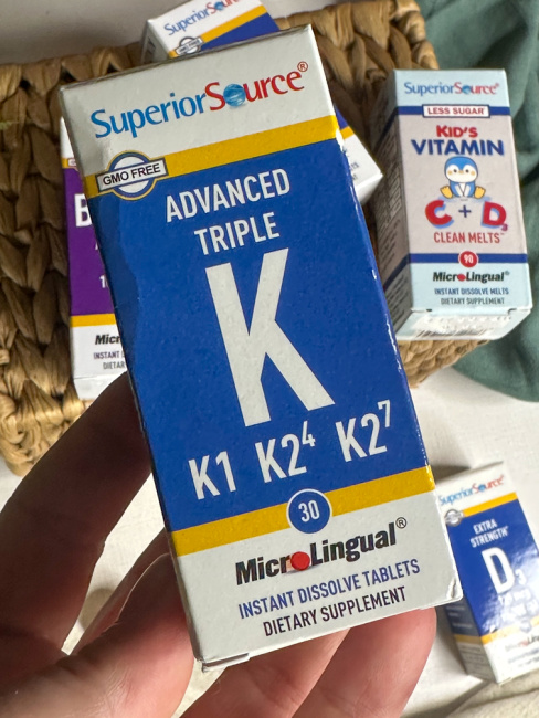 This is a full spectrum complex Vitamin K supplement that provides you with Vitamin K1 and two forms of Vitamin K2 ~ Vitamin K2 MK-4 (Menaquinone-4) and Vitamin K MK-7 (Menaquinone-7). Vitamin K2 is the biologically active form of Vitamin K and the end result is the triple K formulation that assists in directing calcium away from soft tissue and to the bones to make them stronger. This is the perfect supplement for me as I grow older and I love what this full spectrum complex Vitamin K from Superior Source can do for me!