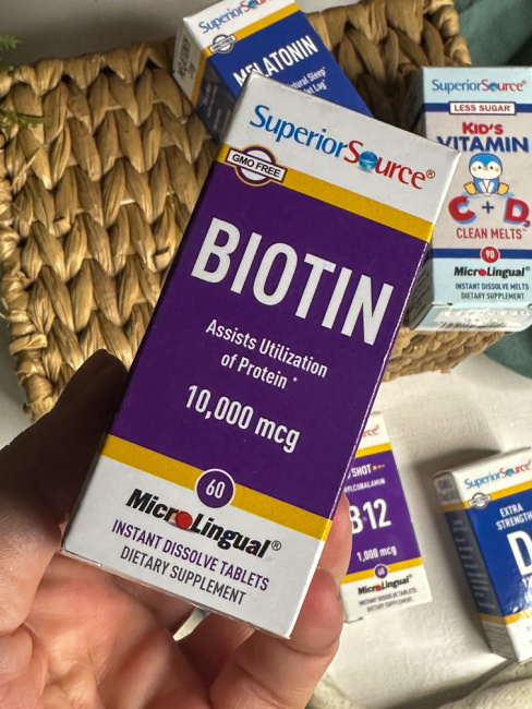 I am falling in love with this new-to-me supplement from Superior Source and I will be using it going forward as I had no idea the benefits that Biotin provides. Biotin helps to maintain healthy blood sugar levels, promotes nail and hair strength, supports cell growth and metabolism of fats and amino acids and the production of fatty acids. It is an essential in the healthy functioning of the “Krebs cycle” in which energy is released from foods and transferred to the body for use* To take… just pop one under your tongue and let it dissolve. That is it and now you an enjoy all of the health and wellness benefits that this supplement provides!