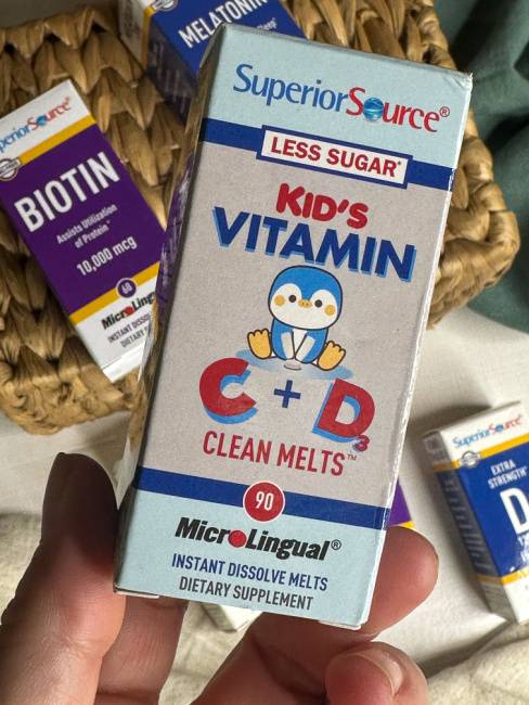 I am loving this line of Clean Melts from Superior Source for the kids! This one provides your little one with much needed Vitamins C and D and the benefits of each are huge. Your child’s growing body cannot produce vitamin c on its own which is why supplements like this one from Superior Source are a must to ensure they get their daily dose of Vitamin C. Vitamin C is super important so that your body can form so many things…….. Collagen, blood vessels, cartilage and muscle which helps to maintain many body tissues, including your skin, Neurotransmitters which are the chemicals needed for signaling the nervous system, Carnitine which is a chemical that supports the transport and breakdown of fatty acids to generate energy and last but not least… healthy bones and teeth which is super important during your child’s formative years. Add to that the benefits of the immune boost you receive when taking Vitamin C and it is a win win for your child’s daily supplement needs.