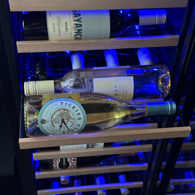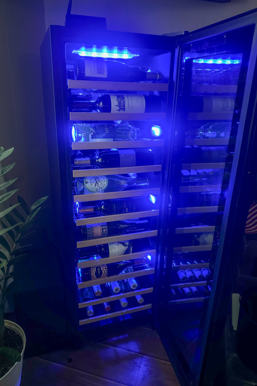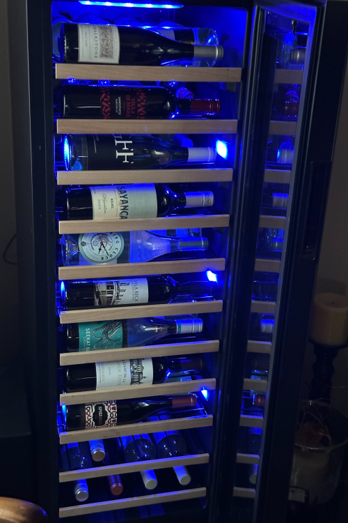 I love the lighting that this fridge provides as well. Think about it, wine flavors are delicate, which is why the Newair Shadowᵀᴹ Series wine fridge features a blue, soft LED light that illuminates your collection without emitting harmful heat like a standard lightbulb.