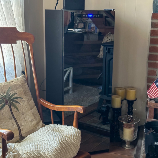 This fabulous Newair Shadow Series 62 Bottle Wine Fridge comes with double-paned glass that helps to provide excellent insulation which keeps harmful heat and UV light out of your fridge and away from your wine bottles. The on-trend mirrored glass is really spectacular looking and I love that it resists fingerprints and smudges, so it’s always ready to impress your guests. I also love that the control panel is built right into the glass for a streamlined look and added durability plus it has lots of fabulous features.