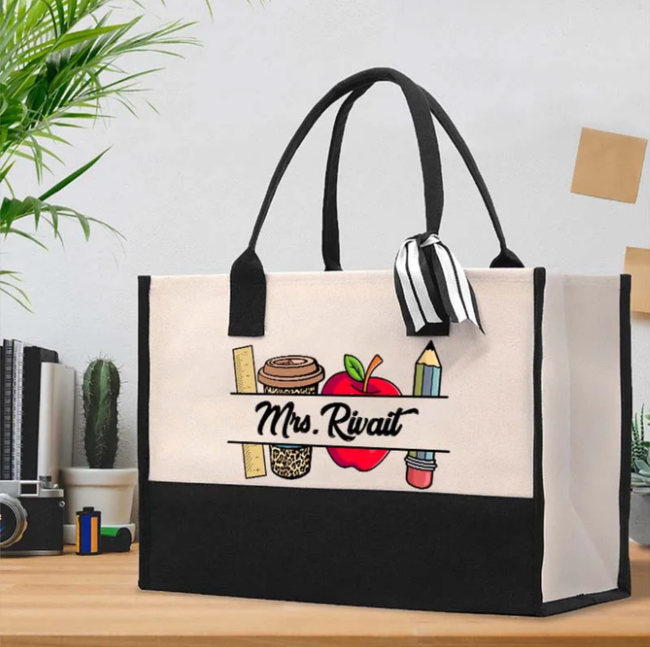 Personalized Pencil Ruler Teacher Name Teacher Cotton Tote Bag
