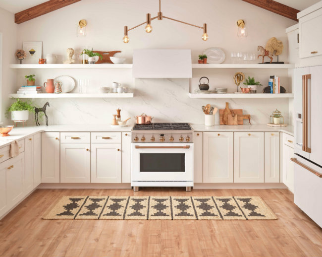 The Café Matte Collection’s Matte White finish offers a soft luster and warmth that adds a fresh approach to a staple kitchen color. With a luxe look and a smudge resistant, soft touch feel, Matte White allows owners to create pops of brightness against dark cabinetry or a seamless blend in an all-white kitchen.