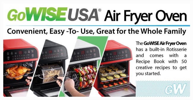 So what do you think of the GoWISE USA Air Fryer Oven? You can cook all of your favorite fried foods with little to no oil and now… you can even prepare meals and snacks that were recently impossible with the traditional air fryer. Add in the fabulous dehydrator feature and you have a serious all in one unit that can do it all for you and your family. You will also enjoy delicious whole roasts, chickens, tenderloins, and evenly roasted vegetables with the improved rotisserie capabilities and included rotisserie accessories. What is not to love? This is a must have for every kitchen and a fabulous gift that your recipient will love!