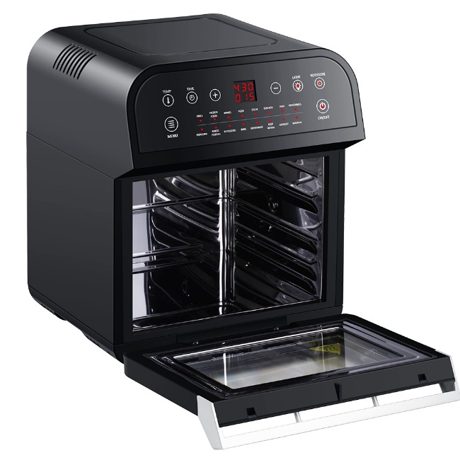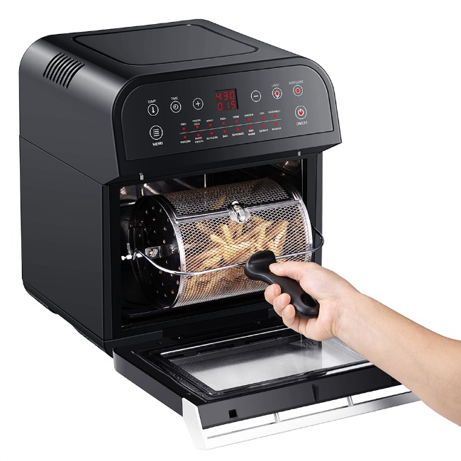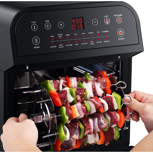 The GoWISE USA Air Fryer Oven is family sized and a space saver in one as it eliminates the need for multiple appliances. You get 12.7 quarts of cooking space which makes this air fryer one of the largest out there but is built to be compact enough to fit easily on your countertop. There are 3 rack levels that allow you to prepare family-sized quantities and the ability to control how fast and how crispy your food comes out.