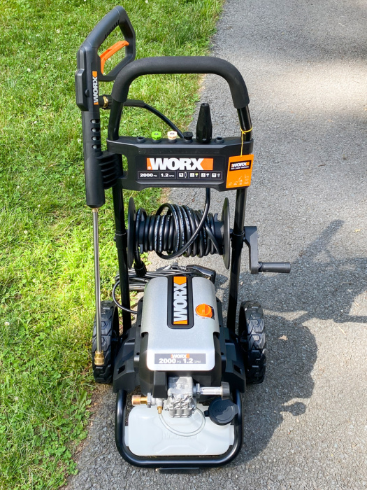 I am sure you have seen many of the posts that I have published in the past year and a half, about our buying our new home in the Pocono Mountains. I absolutely love having a home of our own and a yard to care for as working outdoors and taking care of our home and property is my favorite past time. When I pull up to my home and the yard looks immaculate and well kept, it makes me feel good which is why I love tending and caring for it. Recently I posted about WORX and their 20V Power Share GT Revolution Trimmer/Edger/Mini-Mower and if you have read that review… you know that I love that tool as it helps me to do just that…..keep my lawn perfect and cared for. Because of my love for WORX and their amazing line of outdoor tools…. I jumped at the chance to give their 2000 PSI Electric Power Washer a try as we live in the mountains and there are trees all around and because of that our driveway, fence and even our car need really good cleanings. More than what a sponge, soap and water can do which is where my love for this cleaning tool comes in. Keep reading to find out the features of this pressure washer and why I am loving it…..