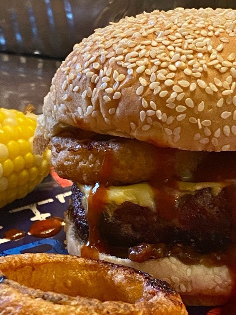 Summer is here and that means lots of delicious meals cooked outdoors on the grill. On of my absolute favorite things to make on the grill are always a batch of delicious homemade burgers topped just the way you like them and my new favorite condiment for my burgers is Bacon Jam from TBJ Gourmet! I received a few jars to try and I have to tell everyone that I know about this delicious spread as it is truly spreadable bacon in a jar. I created a Western Burger using this Bacon Jam and the delicious spread accompanied with onion rings, cheese and barbecue sauce was amazing!