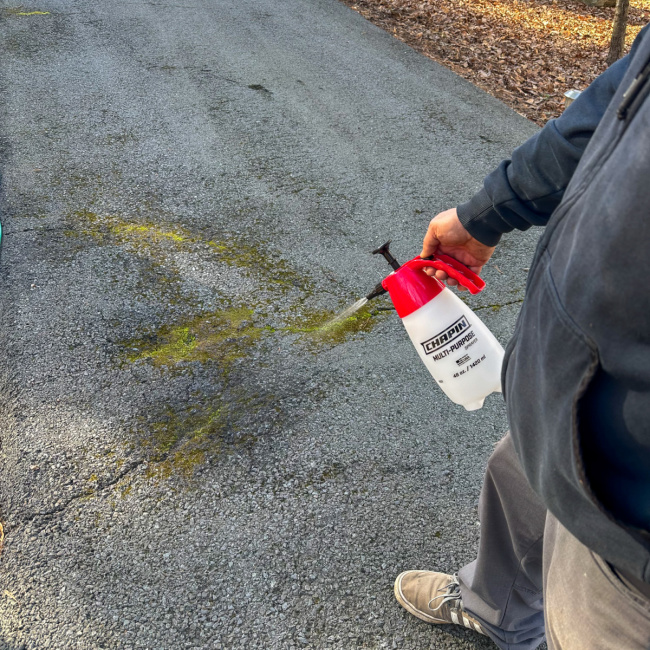 The Chapin Multi-Purpose Hand Sprayer is seriously perfect for so many projects around my home including using it to apply a combination of bleach and water to the moss growing on our driveway. We live in The Pocono mountains and there are trees all around so moss will grow anywhere that it is damp enough. These moss patches started growing in the bend of our driveway and we simply diluted bleach with water and used the Chapin Hand Sprayer to treat the surface. It worked perfectly!