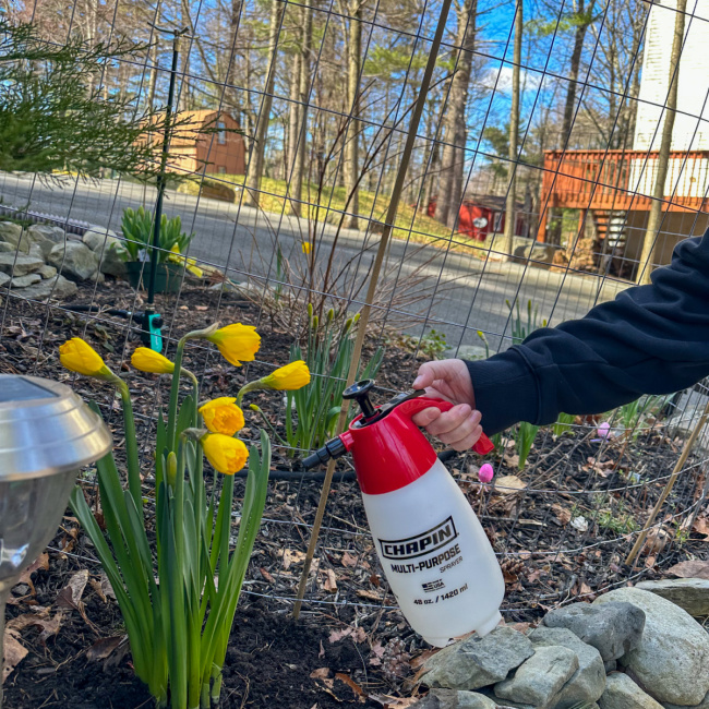 You can see that we just planted some new Daffodil plants in the picture above. The Chapin Hand Sprayer was the perfect way to water them once planted. I have to say that I have a newfound love for Daffodils as they are the one flower that the Deer will not eat! We have learned the hard way, and purchased deer resistant plants and the deer still ate them but for whatever reason they won’t touch the Daffodils. I add more of them to my yard each year and love them as the pop of yellow each Spring makes me smile.