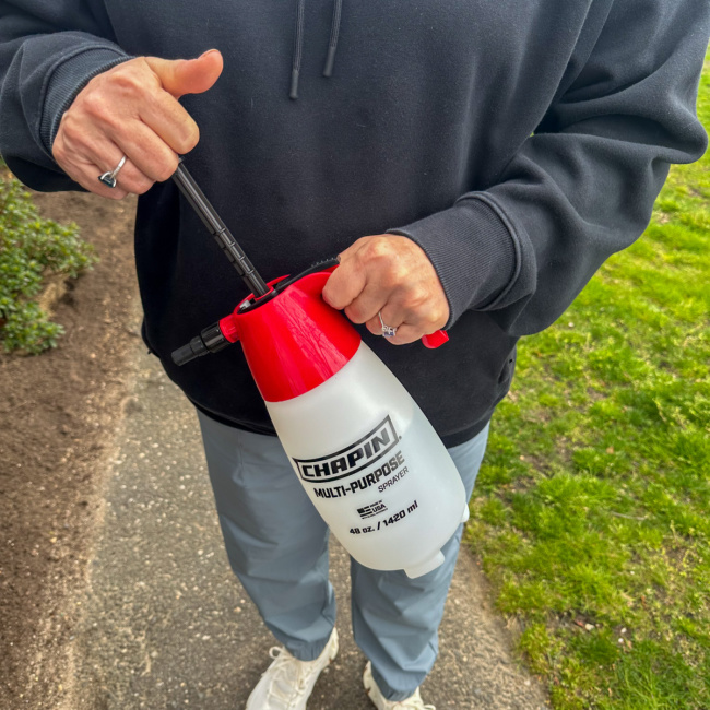 We also used the Chapin Hand Sprayer to apply a water based insecticide to the perimeter of our home. We will retreat as needed but it worked beautifully at applying with no mess.