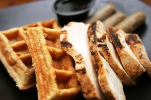 A delicious French classic, chicken cordon bleu is made of chicken breasts stuffed with ham and Swiss cheese and covered in Gluten-Free bread crumbs. Pan seared and finished in the oven, our healthier version is served with our own house made honey mustard sauce. My choice of sides were the Red Skin Mashed Potatoes with Butter and Green Beans.