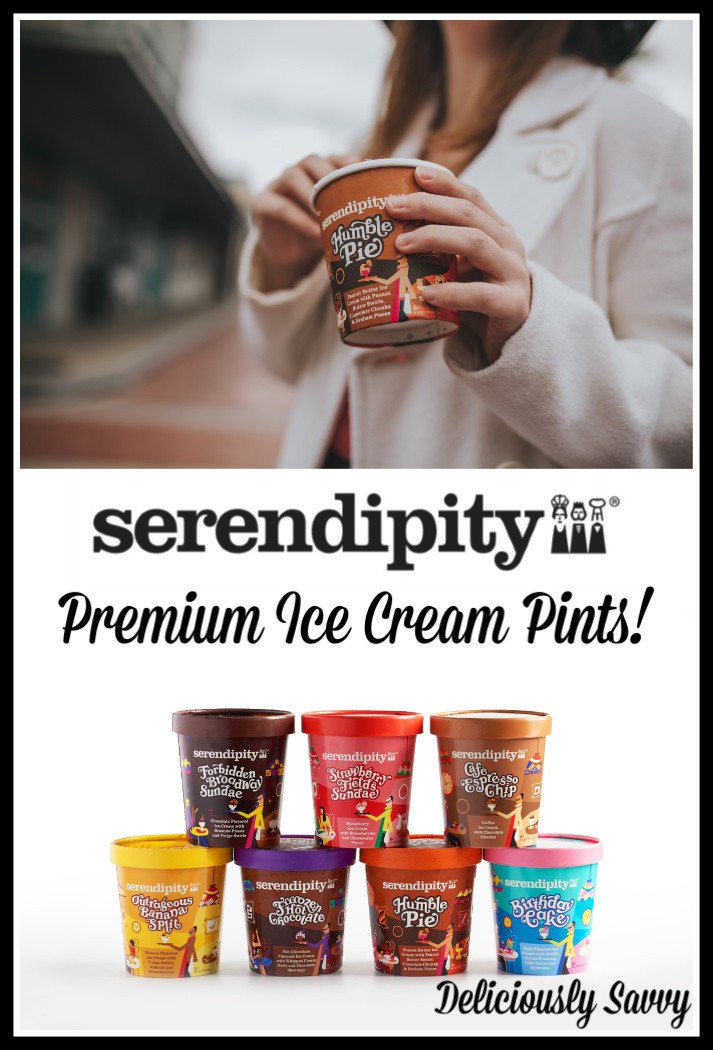 So what do you think of the 11 decadent and delicious flavors of the new Serendipity Ice Cream Pints? Are they not simply delicious looking? Make sure you are on the lookout for them as they are available at stores nationwide including my local grocers, Walgreens and 7-Eleven! Check them out online too and visit them on social media!