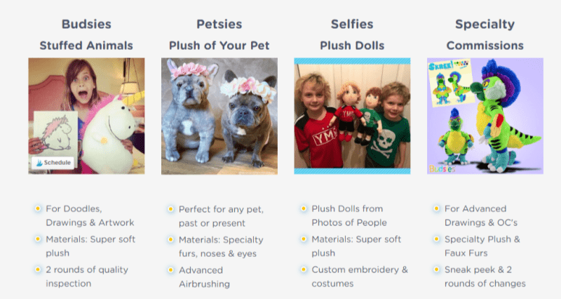 Budsies will create anything from a doodle or drawing that your little one creates but it does not stop there. Budsies will also create a plush of your pet, plush dolls from photos of people which are really cool and more! Seriously this is so cool as these are one of a kind creations that only you will have and I think it is just so special.