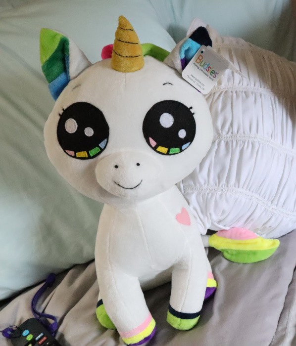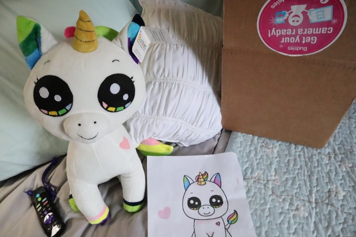 What I loved with Budsies was the communication and their attention to detail. If at anytime you want something different when it comes to your stuffed animal creation…. they are there to assist you. I personally let them do their thing and the outcome was perfection as you can see above. Lila is the name of this adorable Unicorn that my little Scarlet created and she just loves that they used different textures of fabrics throughout and she has Lila by her side at all times which I love!