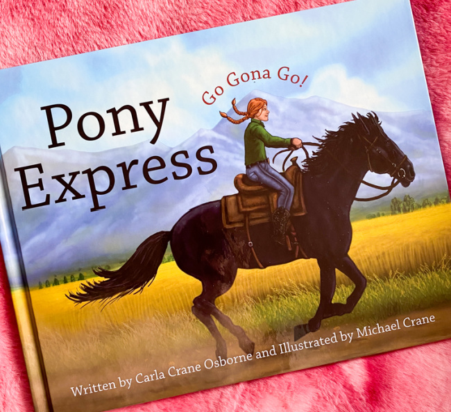 I am super excited to share a NEW kids book with you all that is the perfect book to add to your child’s book collection and that your little one’s will surely enjoy and love and it is titled Pony Express by author Carla Crane Osborne. I happen to be a huge fan of Carla ever since having the chance to read her book Under the Barnyard Light, which my God Daughter Scarlet reads almost every night before bed. Scarlet and I also love tuning in to Carla’s Gona’s Reading Ranch You Tube Channel whenever we have a few minutes to spare and tune in and listen to the newest books added to the channel. Carla reads aloud to the kiddos and it is always a blast and Scarlet loves tuning in and I enjoy the quality time spent with my favorite little lady. Make sure to check out my review of Under The Barnyard Light which is the prequel to Pony Express & tune in to Gona’s Reading Ranch today but first…let me share my love of author Carla Crane Osborne’s newest kids book… Pony Express which my little Scarlet is totally loving!